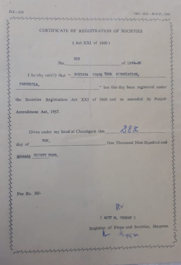 The Haryana State Yoga Association was constituted in the year 1984.